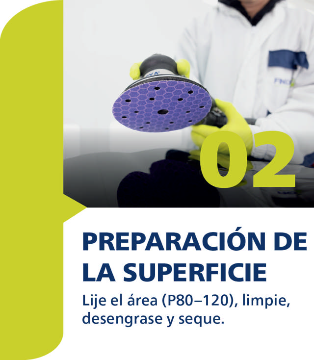 Este kit profesional incluye la pistola aplicadora, puntas mezcladoras, lienzos de contorno y refuerzo, tres resinas de reparación con diferentes velocidades de curado (rápido, medio y lento), promotor de adhesión y Foam It!