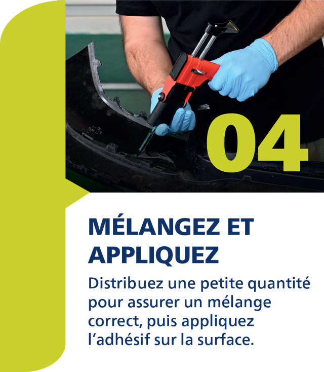 Grâce à notre colle polyuréthane 2K de nouvelle génération, vous bénéficiez d'une solution de collage des plastiques sûre, performante et écologique pour tous vos besoins en matière de réparation plastique. Un adhésif structurel fiable, propre, efficace et professionnel.