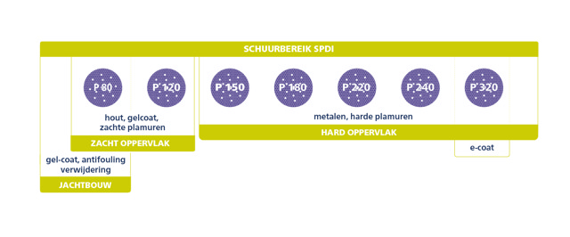 Elke schijf is ontworpen voor een specifieke stap van oppervlaktevoorbereiding, waaronder primer en vuller, nat-in-nat primer, basis lak en de overgangen van basis lak naar blanke lak.